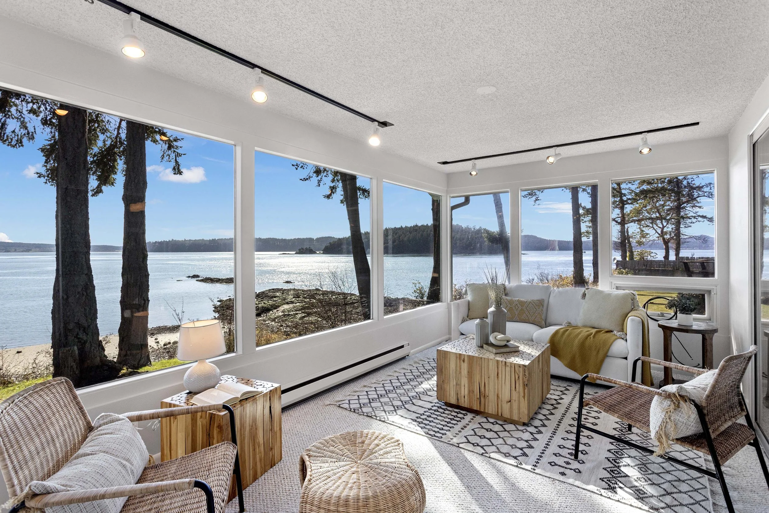 Easy trip from Seattle in the heart of Skagit Valley. With 85’ waterfront on Skagit Bay enjoy fantastic views of Hope Island, Whidbey Island and the Olympic Mountains. Featuring a well-maintained, mid-century home with 2 car garage and outbuilding on level, one-third of an acre lot, with a sandy beach, in a semi-private cove. On Fidalgo Island, just 10 mins from La Conner, 20 minutes to Anacortes, and 90 mins from Seattle, you can drive without the ferry. A private driveway leads to a separate shop space for your projects and collections, a two car garage and ample interior storage. There’s summer moorage in the bay for a sail or motor boat, and the low-bank access makes it easy to walk your SUP, kayak, row boat or canoe to the water’s edge. Stunning, regular, viewing of eagles, herons, otters, and harbor seals, plus a huge variety of shore birds.